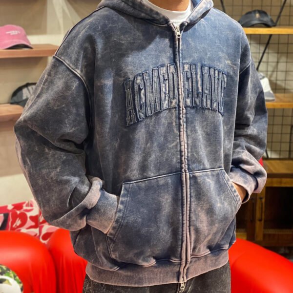 BRANDNEW ADLV Acid Washed Dark Navy Zip Up Hoodie (size 3)