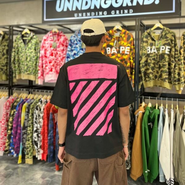 BRANDNEW OFF-WHITE Pink Logo Black Tee (Large)