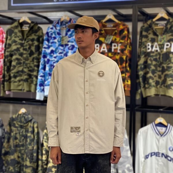 AAPE Moonface Patch Beige Polo Long Sleeves (Medium)
