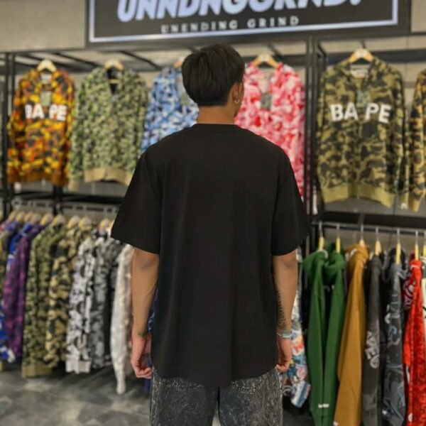 BRANDNEW BAPE Fake Print Jersey Relaxed Fit Black Tee (Large) – SOLD