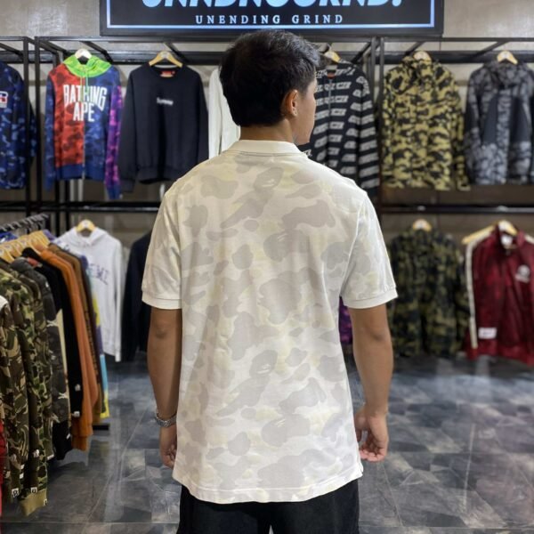 BAPE White Camo Ape Head Glow In The Dark Polo Shirt (Large)