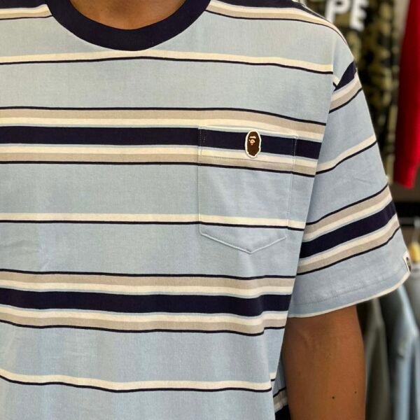 BRANDNEW BAPE One Point Pocket Stripe Blue Relaxed Fit Tee (Medium)