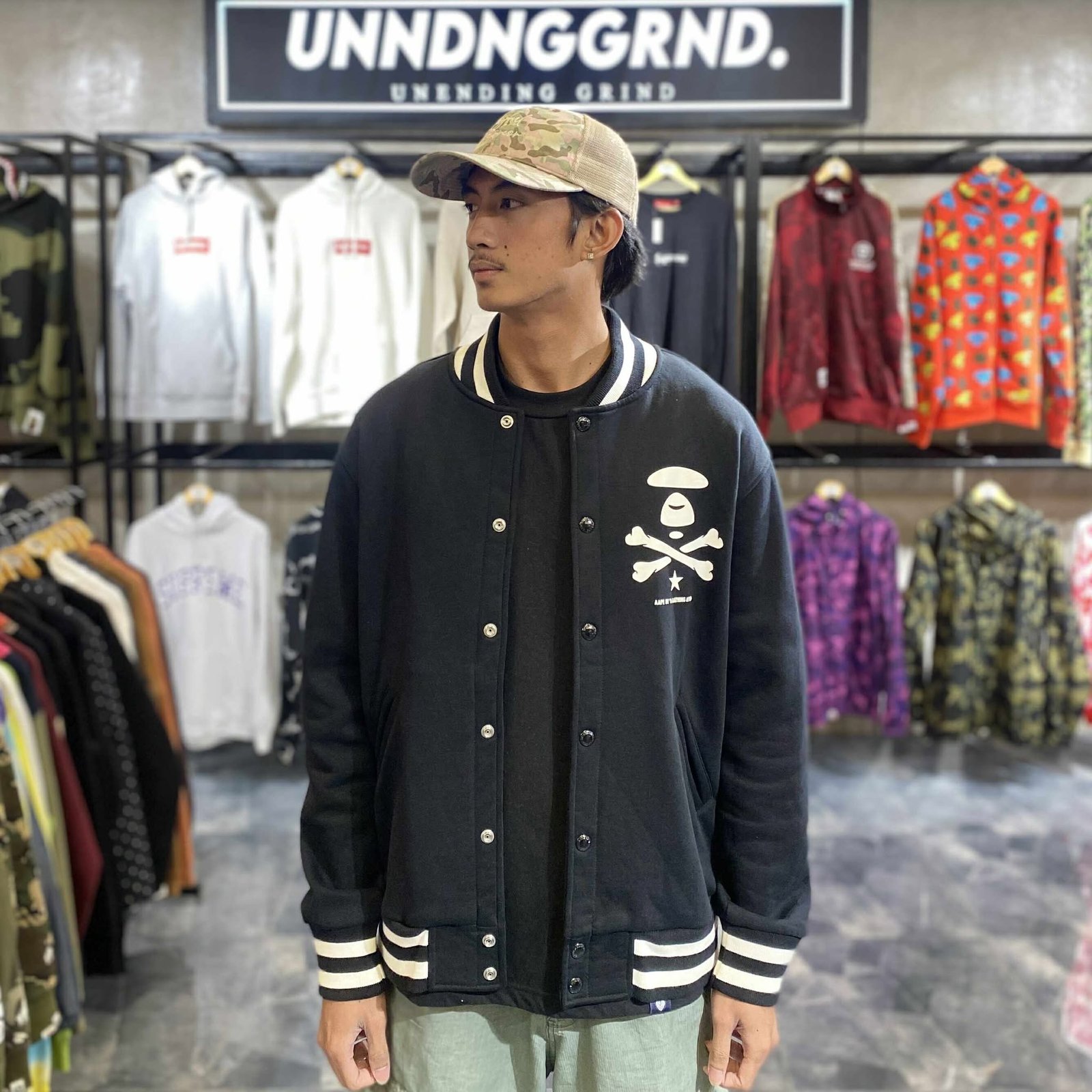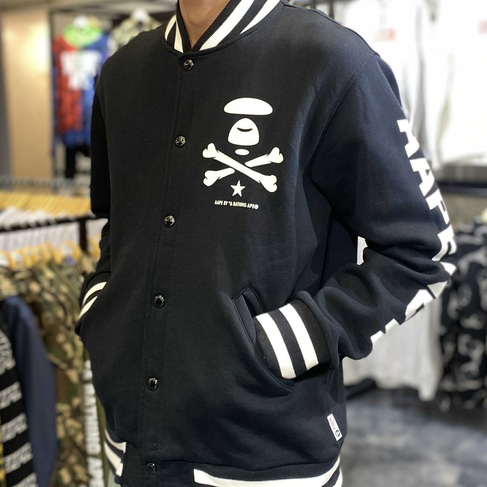 AAPE Now Cross bone Black Varsity Jacket (XL) – SOLD
