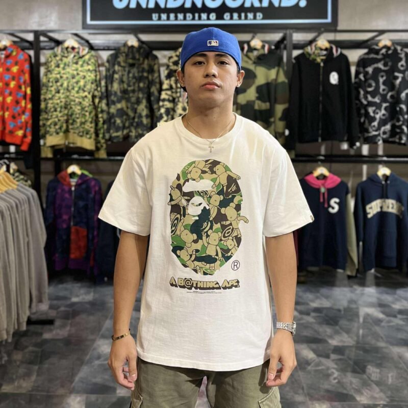 BAPE Big Head Bearbrick Green Camo White Tee (Large) – SOLD