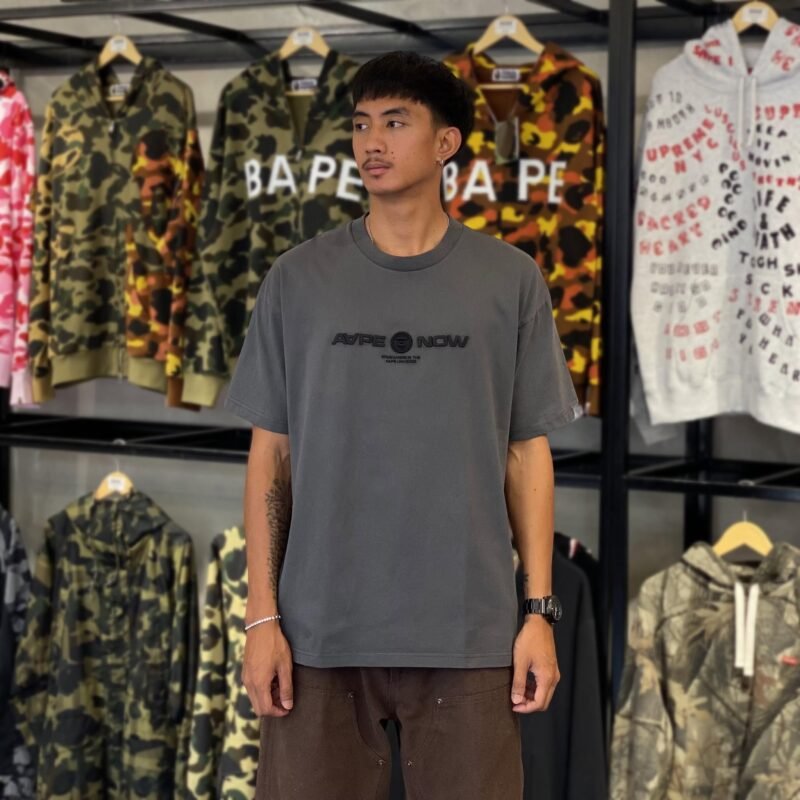 BRANDNEW AAPE Now Logo Embroidered Gray Relaxed Fit Tee (Large)