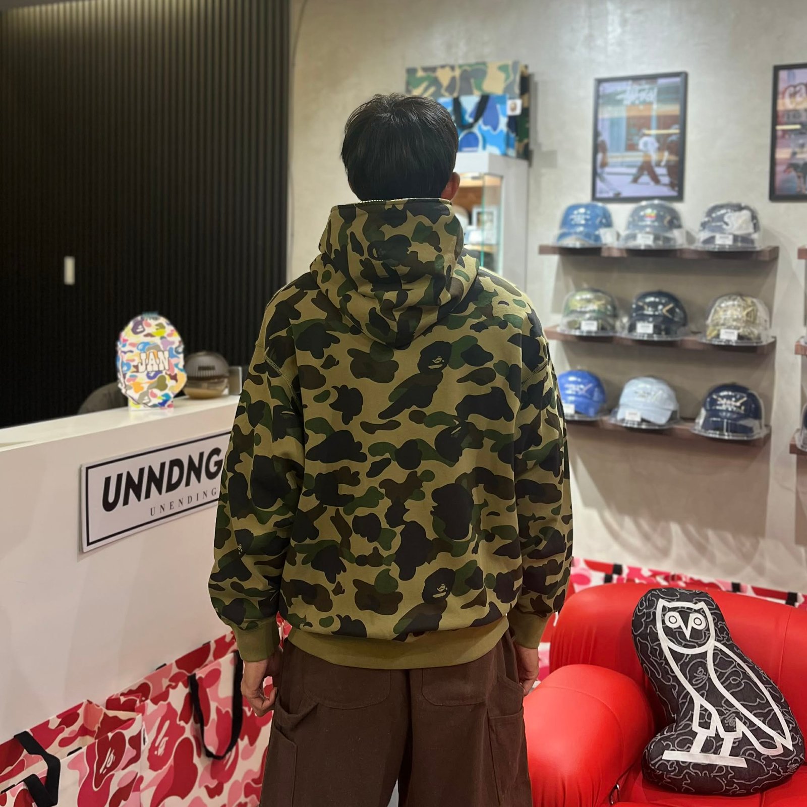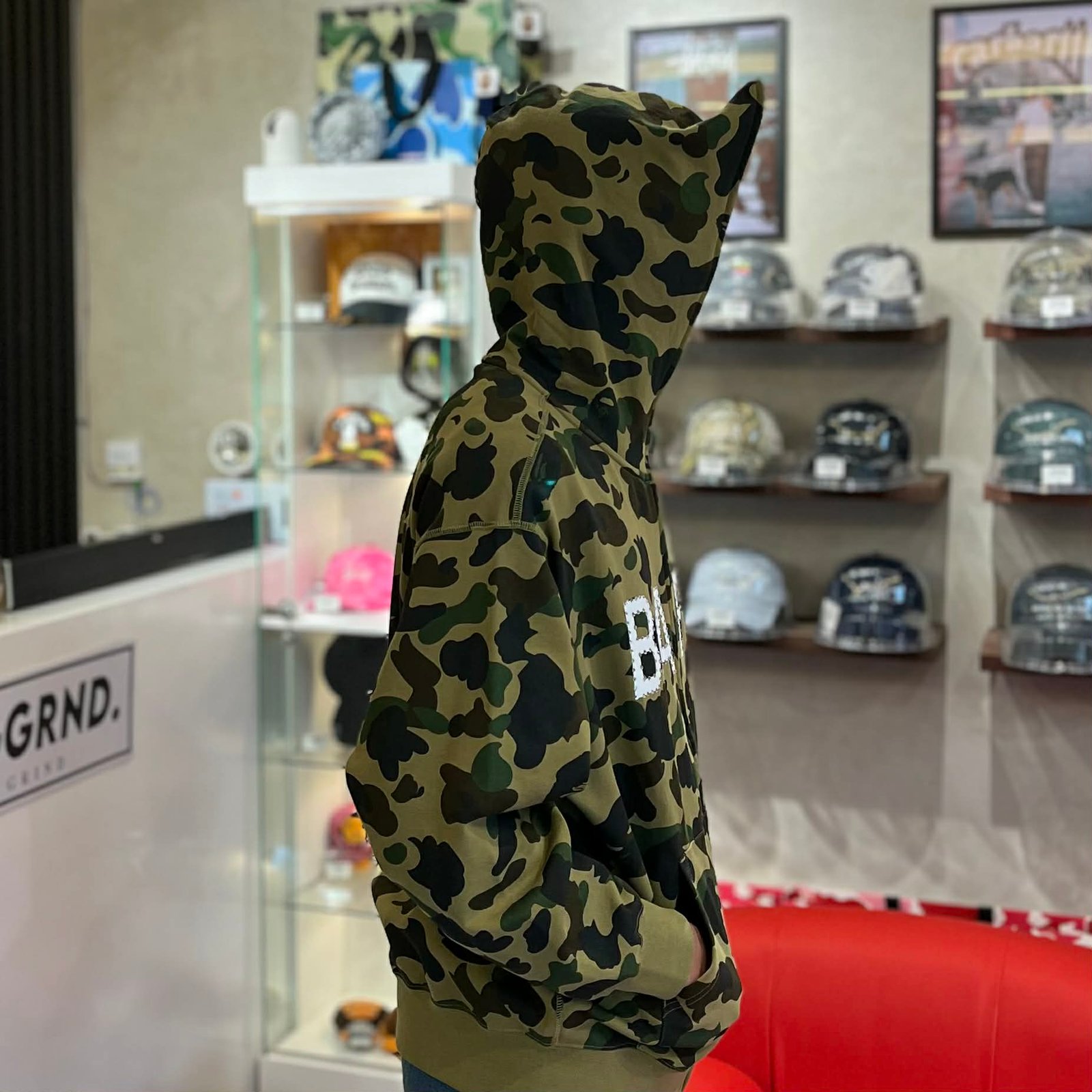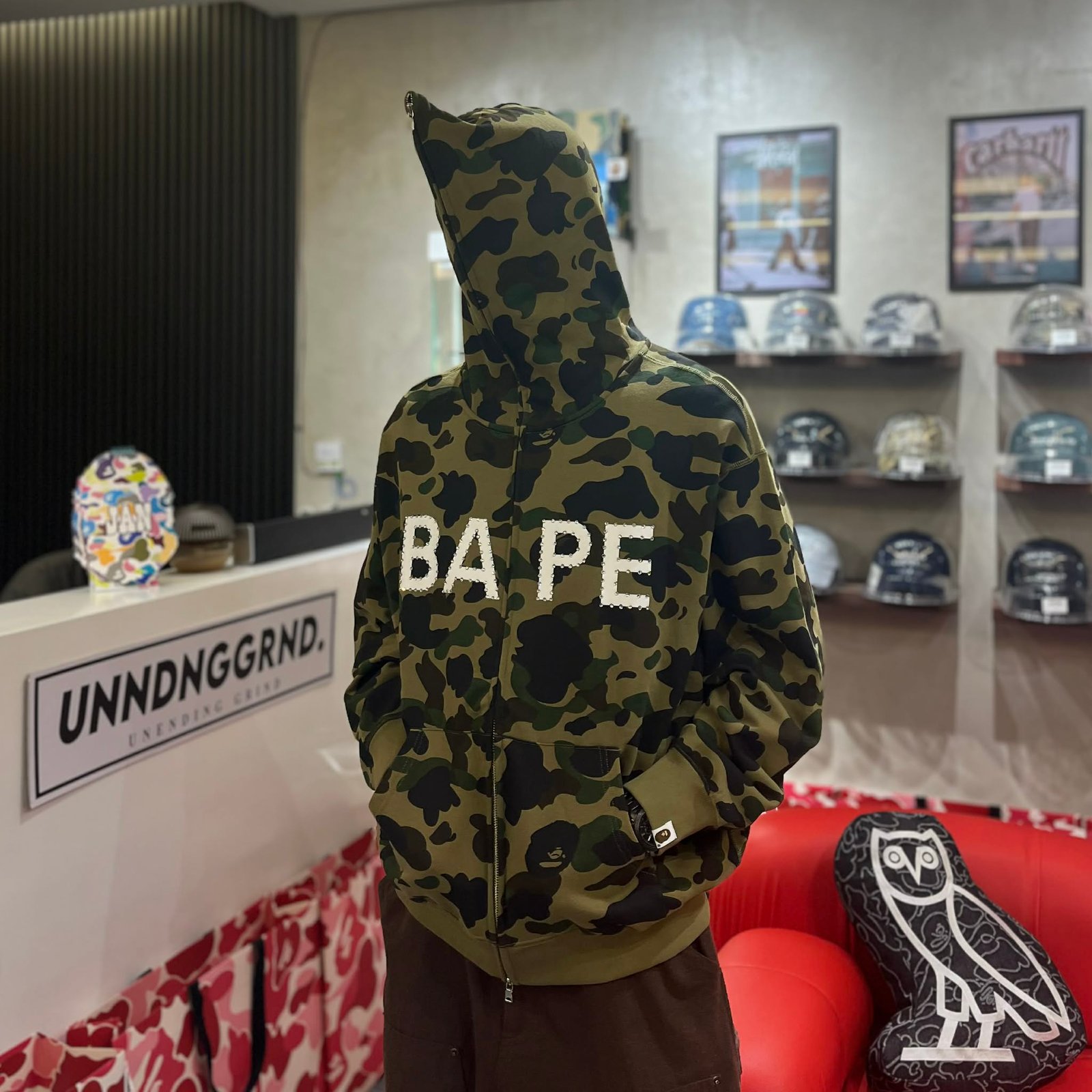 BRANDNEW BAPE 1st Camo Rhinestone Logo Green Full Zip Hoodie (Large)