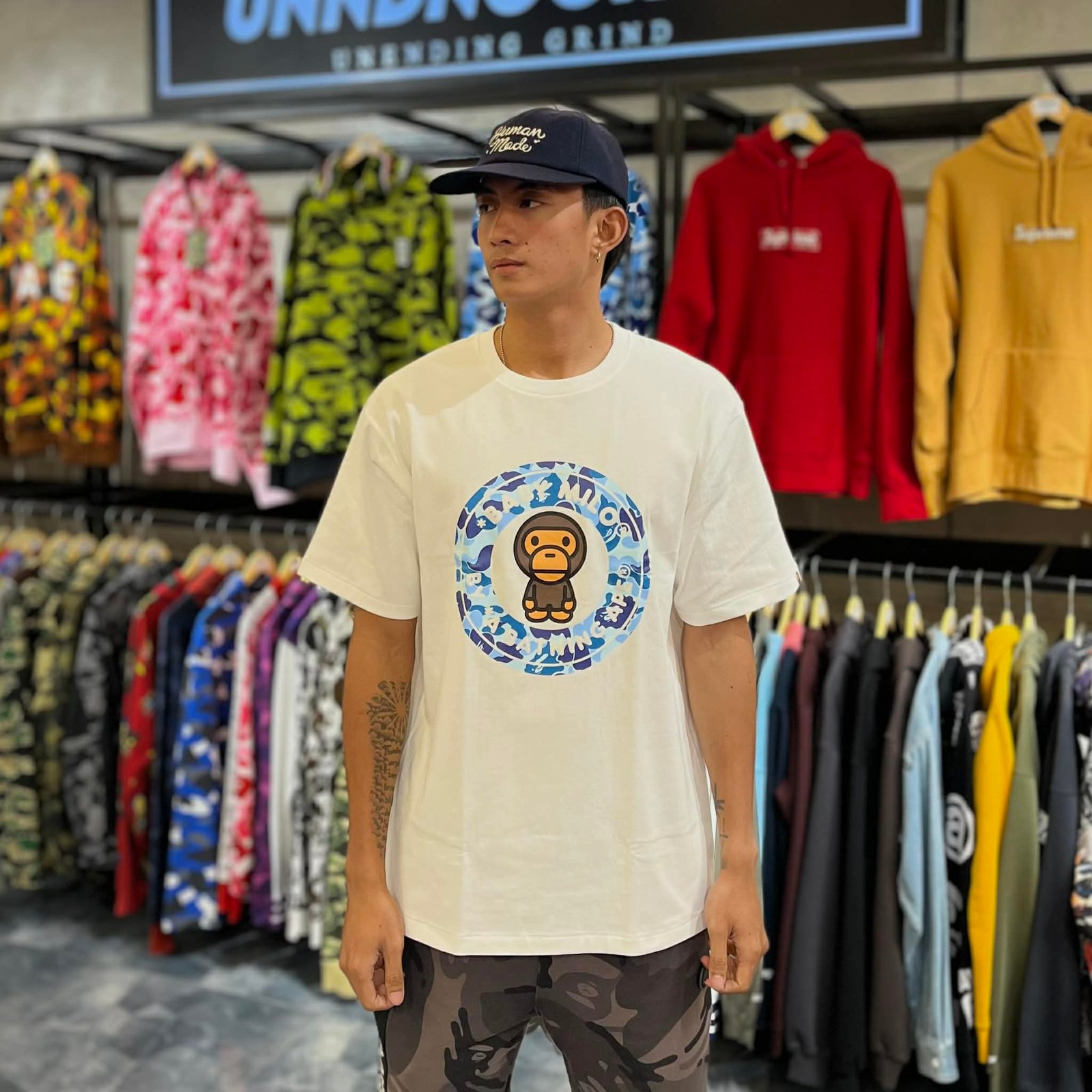 BRANDNEW BAPE Baby Milo Blue Camo Busy Works White Tee (XL)