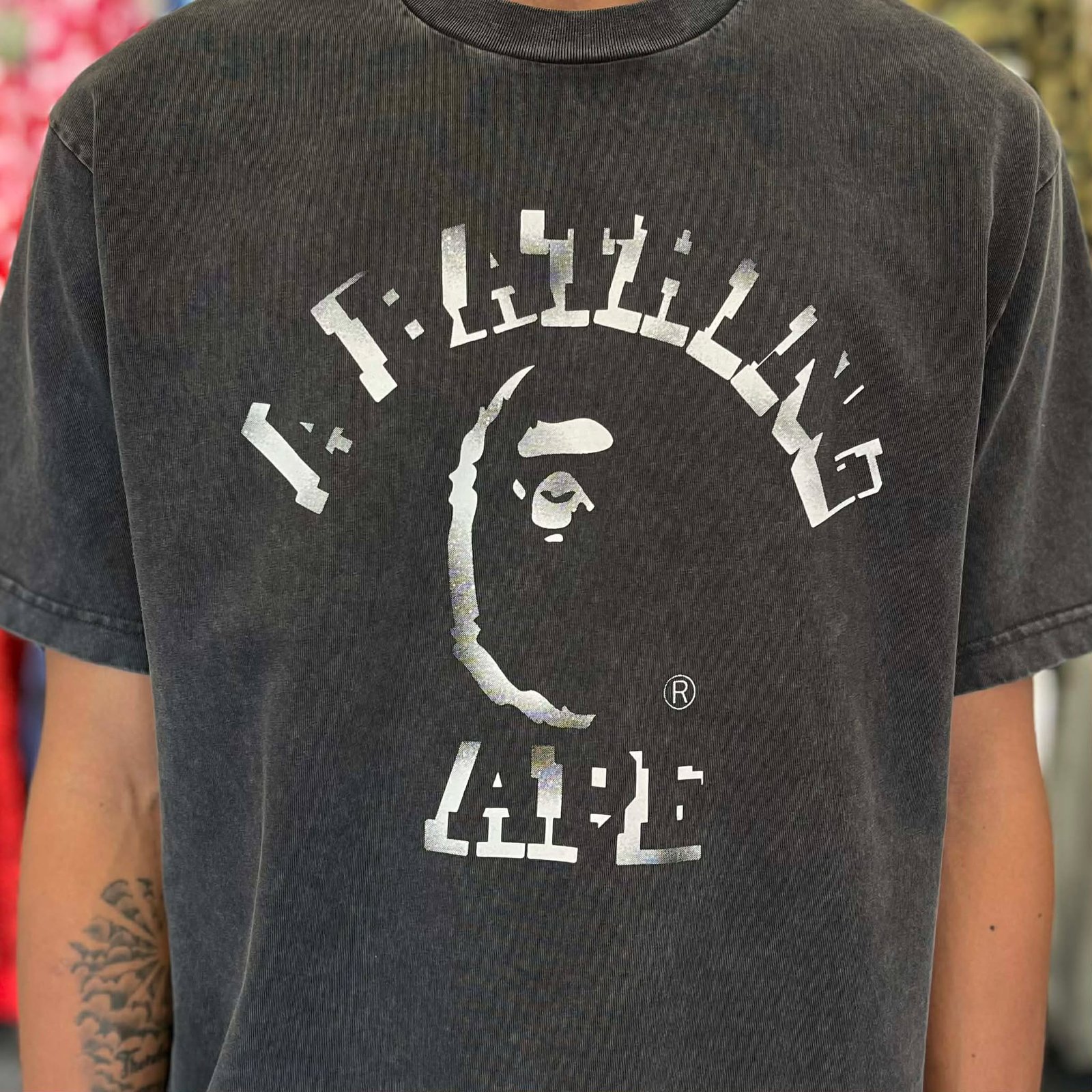 BRANDNEW BAPE Garment Dye Spray Print Black Black Relaxed Fit Tee (Medium) – SOLD