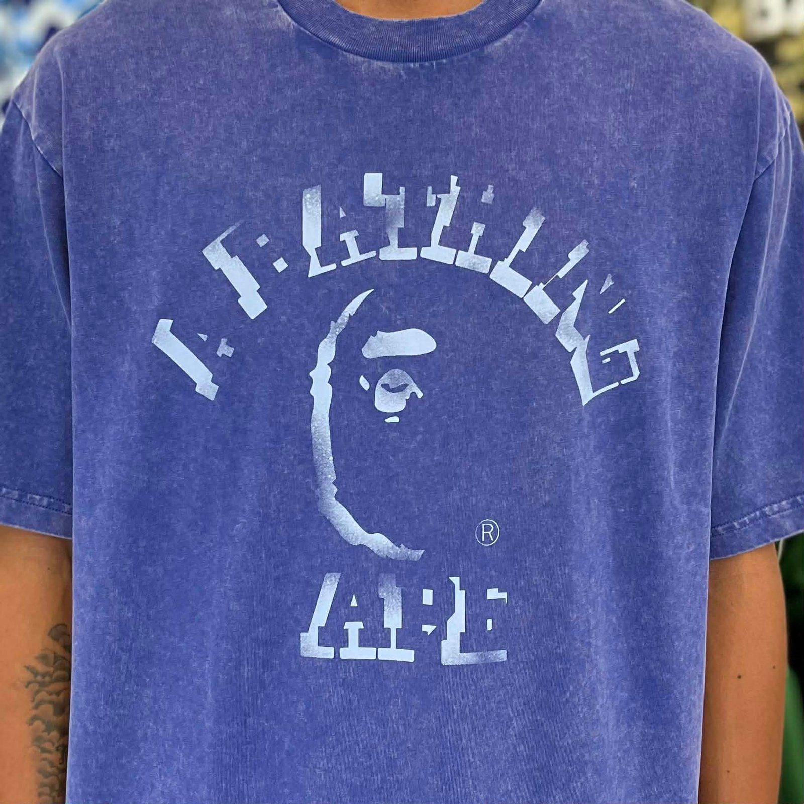 BRANDNEW BAPE Garment Dye Spray Print College Blue Relaxed Fit Tee (Large)