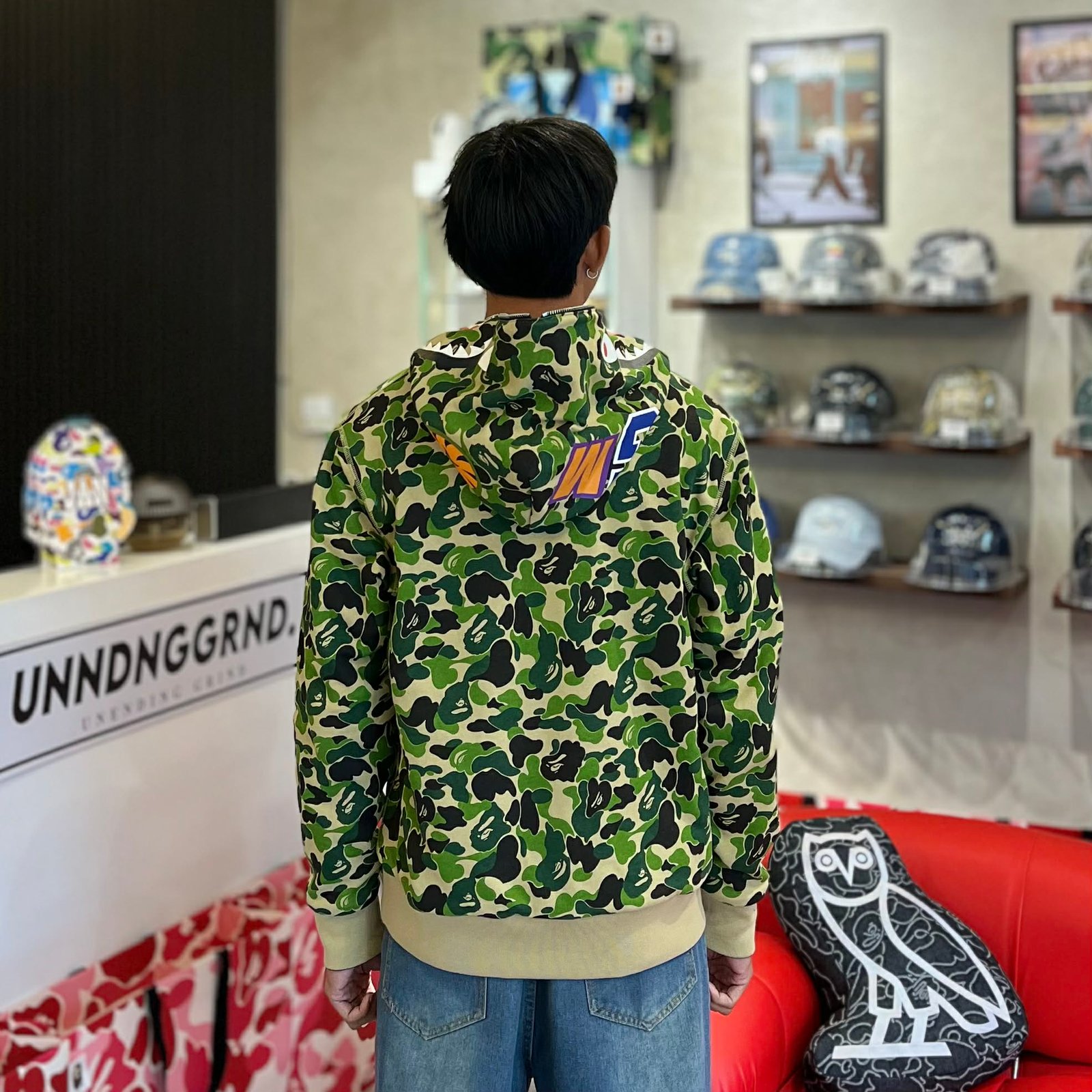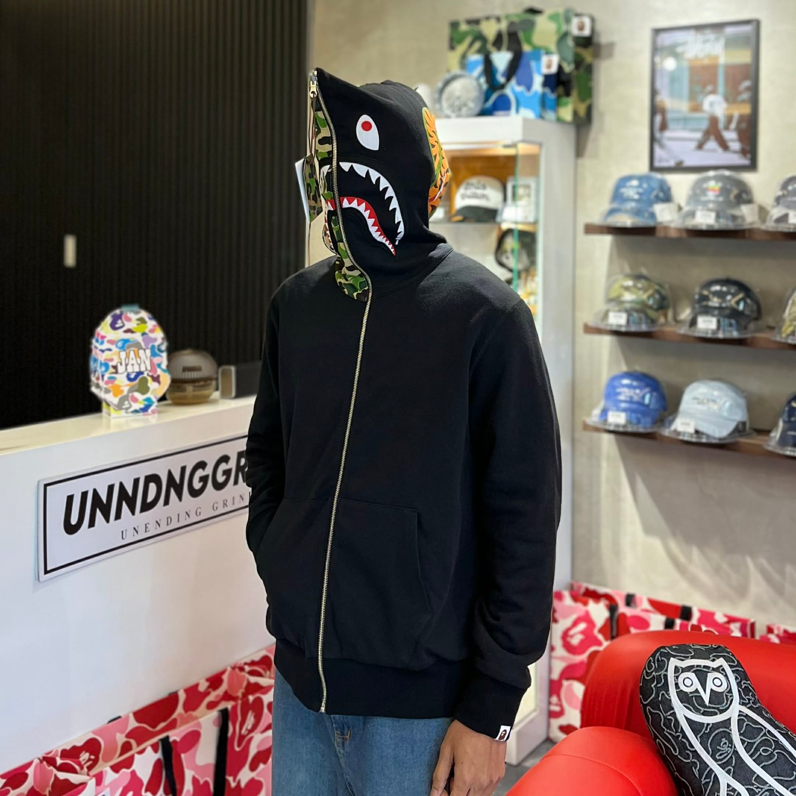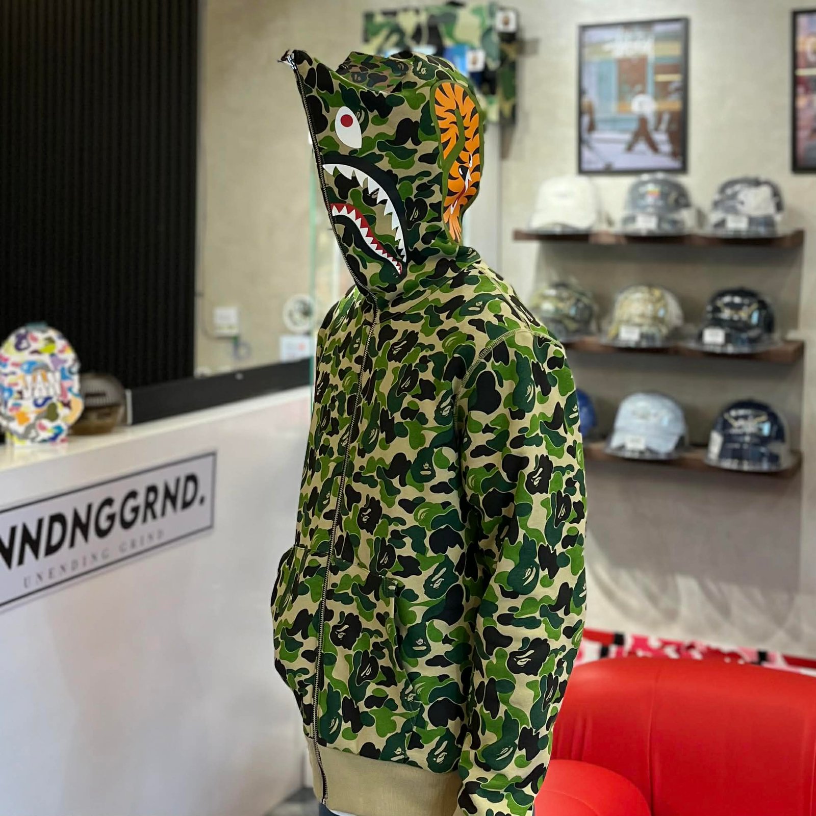 BRANDNEW BAPE Shark ABC Green Camo Reversible Full Zip Hoodie (Large)