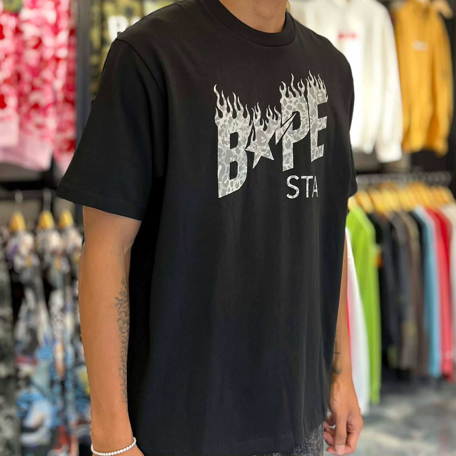BRANDNEW BAPE STA Leopard Pattern Relaxed Fit Black Tee (Medium)