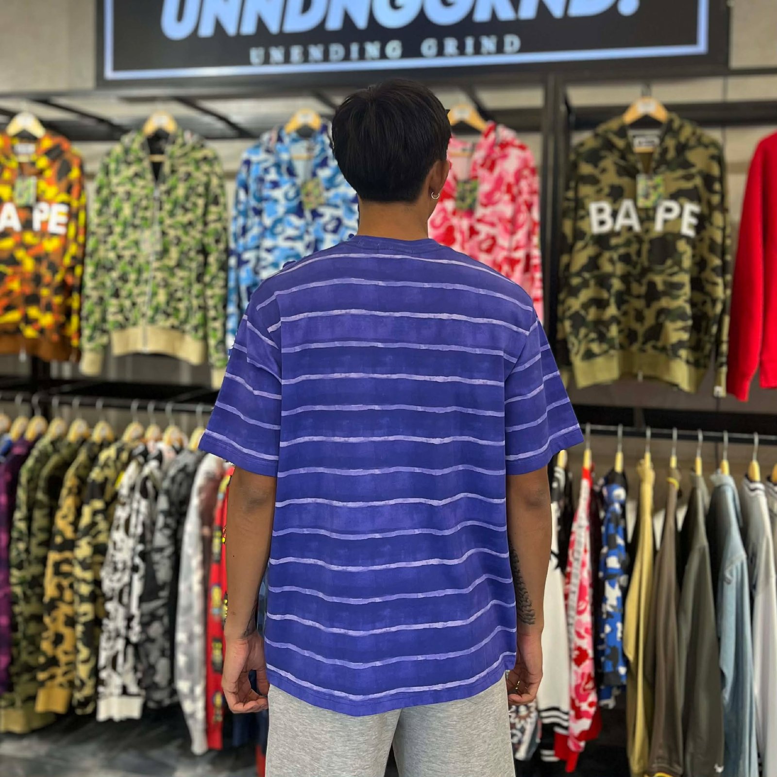 BRANDNEW BAPE Wave Pattern Stripe One Point Purple Relaxed Fit Tee (Medium)