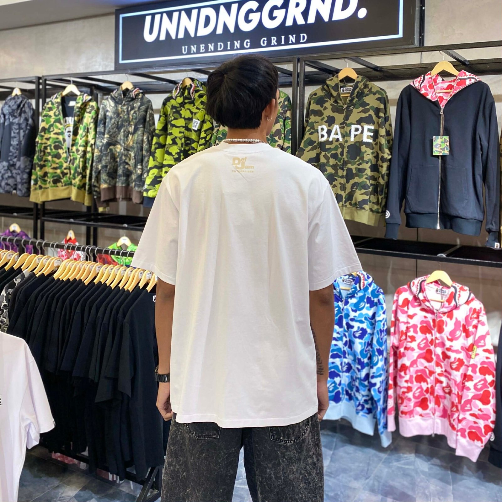 BRANDNEW BAPE x DEF JAM Camo College Logo Relaxed Fit White Tee (Large)