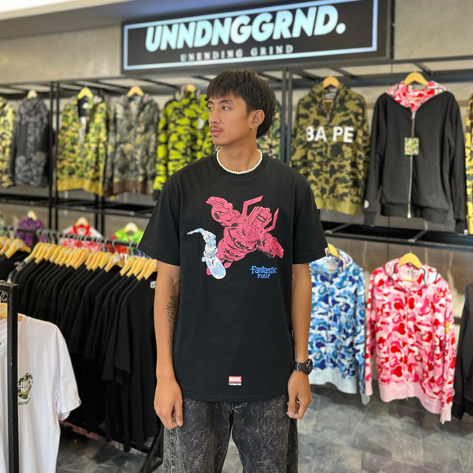 BRANDNEW BAPE x MARVEL F4 Galactus & Silver Surfer Black Tee (XL)