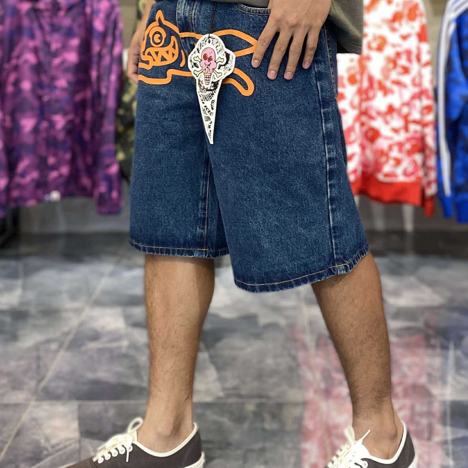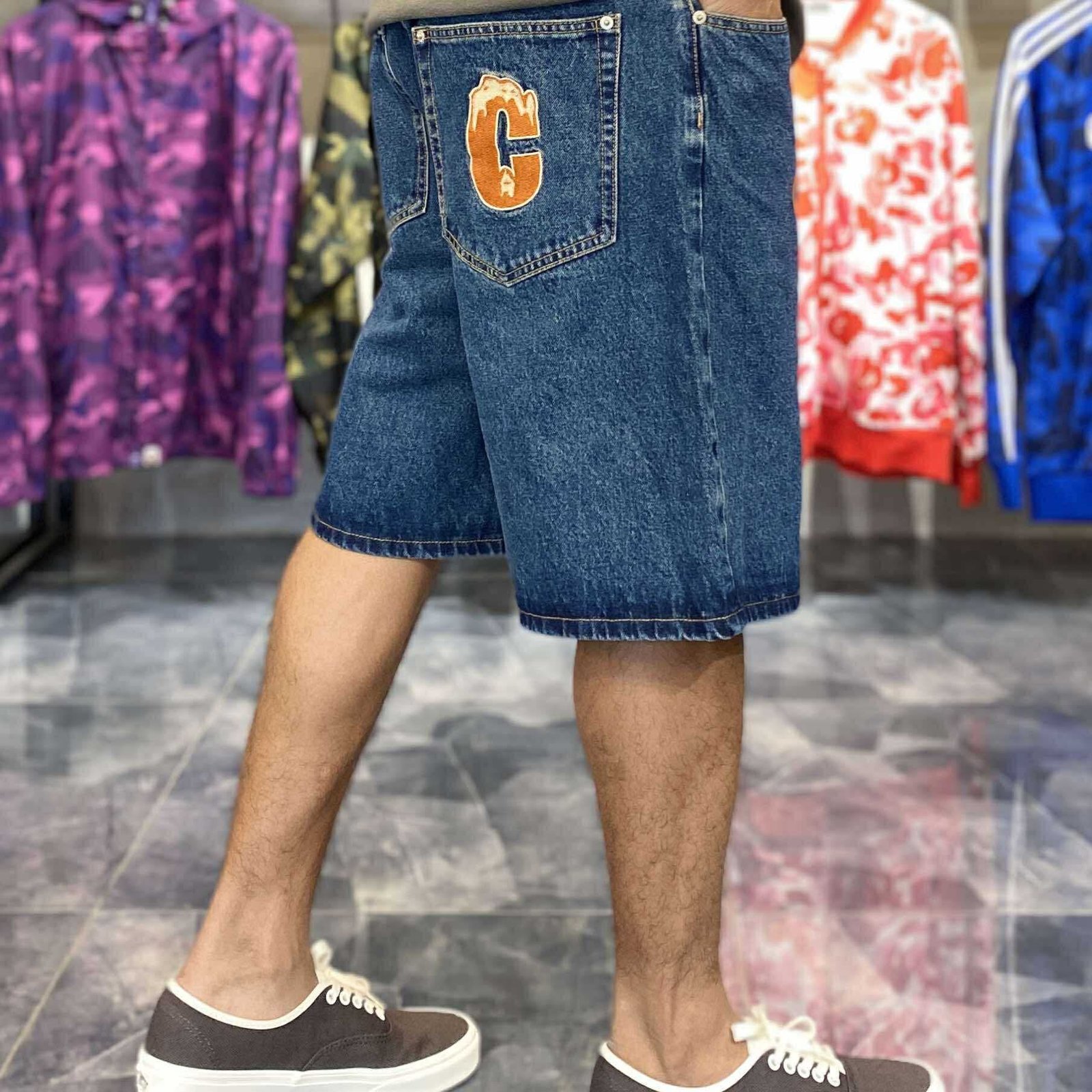 Size: 34 on tag Width: 32-34 Length: 21 Weight: Heavy-weight