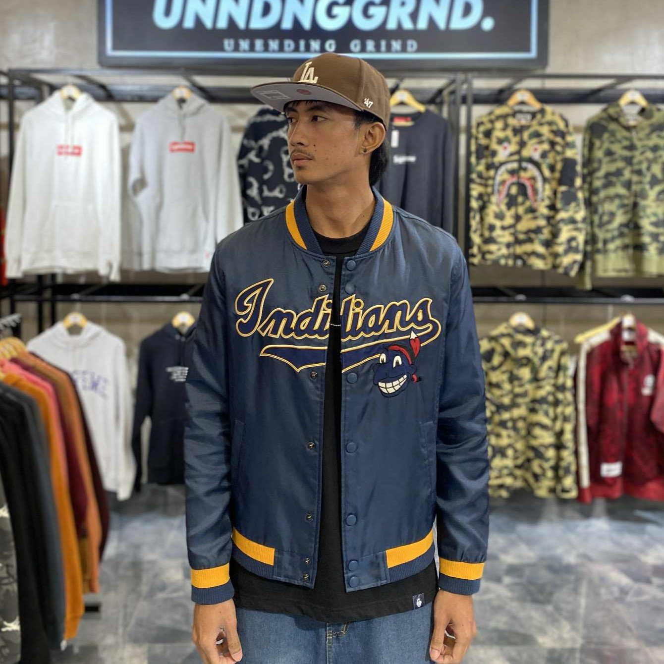 MLB Indians Navy Blue Varsity Jacket (Large)